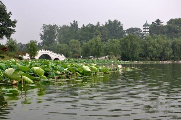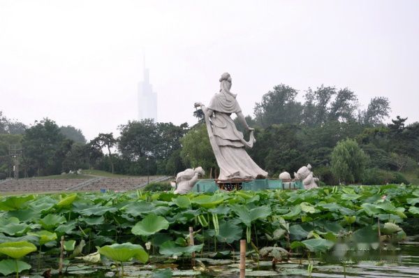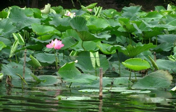 巧的很,我们在南京第二天的游程仍然是从玄武湖开始的。从火车站广场乘1#地铁,过两个站点就到玄武门了。上世纪90年代,我曾经有两次在玄武门的江苏省展览馆参展经历,前后加一起共有两周光景;站展台、接待观众、商务宴请都围绕着展馆和附近地段安排开展,因此,这片区域是我最为熟悉的南京地头了。闲暇时也常会在中央路一带溜达,虽然也到玄武门城楼前留过影,但却没有进入公园游玩。这回我们采用了走水路的方式来观赏玄武湖公园的风光景致,穿过城门,进入公园,左手边就是游船码头,我俩租上一艏电动船,前后花了一个半小时(90元),游弋了整个湖面。当日南京呈现了江南黄梅季节典型的桑拿天,人体舒适度很差,倒是泛舟湖面,安坐凉棚之下(这儿的游船顶部搭有凉棚,很人性化的措施),行船之中不时会有丝丝清风扑面而来,化解了不少的暑意,情绪也随之安静下来,进而平添了几许游兴。所谓‘行到水穷处,坐看云起时’,虽然天上无云,但映入眼帘是一片片墨绿的荷叶,其间还点缀着星星点点业已绽放的荷花,景色同样吸引眼球。
