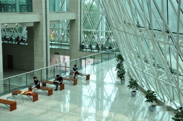 我们在新街口的德基广场美食街吃过午饭后,直接下到2#地铁新街口站,乘了一站路到大行宫站,出站后去参观了“总统府”,因为是青少年爱国教育基地,所以学生凭学籍卡享受免票,成人参观券每位40元。以前和同事们来此,我都在门外等,这种地方看过一回足矣;这回我是耐心陪公子,没想到他对这个地方表现得更加没兴趣,转上一圈后就早早收场。结束后,我们来到一旁的南京图书馆,也许是第一次进入现代化的图书馆,孩子对这里的一切都觉得新鲜和好奇,楼上楼下转个不停,因为没有阅览证,好多馆室无法进入,尽管如此他还是觉得能来图书馆里转转是挺愉快的一件事,至少,通过这他对图书馆的概况有了初步的了解;同时他还提出,回沪后再去上海图书馆看看。这不,又收获了一个无心插柳的成果,不禁心中窃喜。