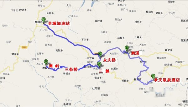 23。看过三坐桥和已经不早啦,赶快到温泉住下。由于道路不熟,又上了小道。