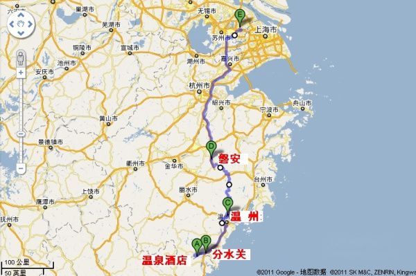 日程紧张,放弃到仕阳参观仕水碇步,因为在其他地方已经看过小的碇步,主要是想早些到温泉去好好泡泡,休整一下,明天回程还要顺路去南雁荡山和楠溪江看看,恐怕去迟了没有房间了。