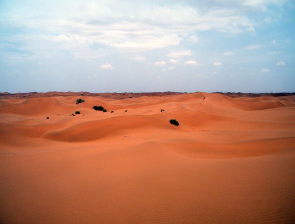 蓝天上飘着朵朵白云,黄沙大漠里一片空寂,身旁只有窜来窜去的沙鼠和干枯的灌木枝桠。远离人海,我在孤独的行走中,不必为今天想,也无需为明天做,我只管享受这一刻,痛快的享受这一刻心静如水的快乐。