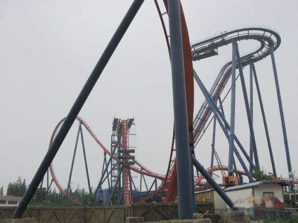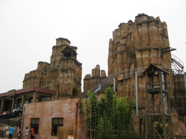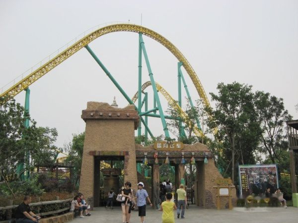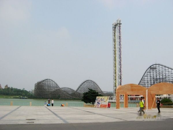 不远处是绝顶雄风,号称全球新一代无底板跌落式过山车,享有“过山车之王”的美誉,让你从60米高的顶峰垂直跌落!感受自由落体的神奇加速度!坐过山车是我从小的梦想,可是随着年龄增加,越不敢坐了。开始纠结,最后还是豁出去了。挺刺激的,可惜的是,90秒里,我80秒都在闭着眼睛尖叫,啥也没看到。最开始爬上去知道的,好高呀,最可怕的是垂直冲下去,那一刻很短但感觉很漫长,耳朵和心脏明显感觉到了压力,在快受不了的时候又变往上爬,接着是转弯。中间有个短暂停歇的机会,就是为了下一次的俯冲。快结束的时候,有一个溅起水柱的环节,可是我过于投入闭眼尖叫,愣是没感觉到。然后就停了,爬出来后,没什么后遗症,还挺开心的。哼着小曲,我第一个跑出去看照片(他们有个高速拍照的服务,30元一张,当然没有买,看一眼就够了,我的面目不是最狰狞的,那就好。)排队时间花了一个多小时,为这个项目来一趟也值了。