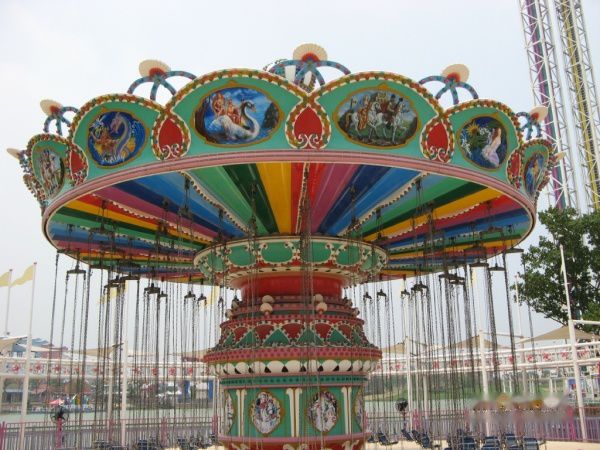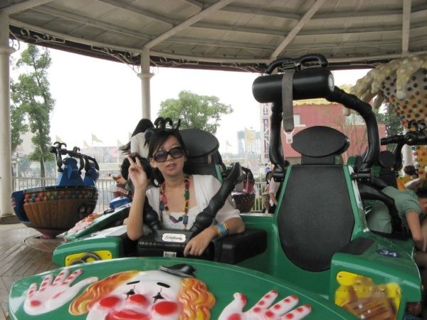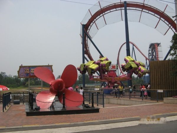 在对面玩了个飞旋驼峰又叫龙卷风。介绍是过山车不会像它一样旋转,陀螺不会像它一样俯冲,带来难以置信的失重感受。在下面看的时候,很想知道被倒过来是什么感觉。坐上去只好,有一堆安全提醒,这时我后悔了,可是为时已晚。在空中翻来覆去地,我连尖叫的力气都没有了。不怎么好玩,远处的大摆锤也就是海盗船,传来阵阵尖叫声,让我望而生畏。