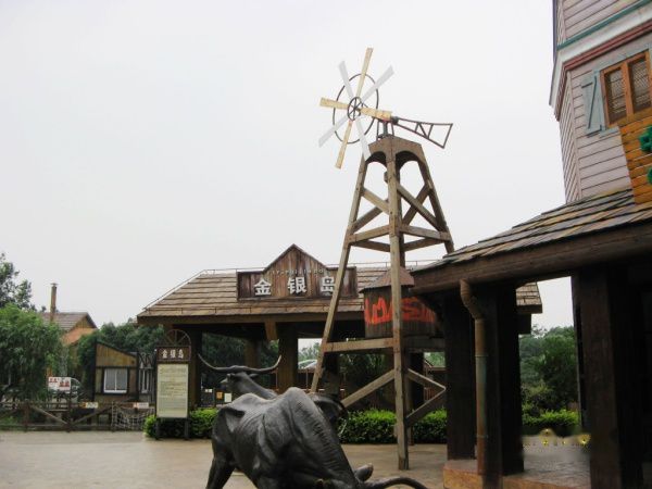 离集合的时间只有1小时,按照路线,我才逛了一半。匆匆路过金矿镇这是美国西部的一座废弃的小镇。废旧的火车、简陋的住房、古老的藤条、老旧的淘金机器上写满了沧桑,矿洞、塔架、帐篷、矿车见证了小镇曾经的繁荣。这里有“矿山历险”,是乘坐以速度快、提升高、回转多闻名的巷道式矿山车。