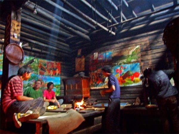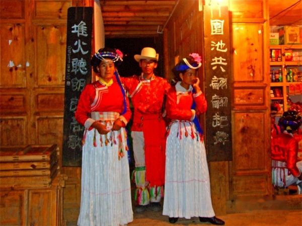 坐在火塘边,喝着酒,吃着瓜子和烤土豆,热情的主人正在火塘里给我们炖土鸡,做农家菜。玲玲借了主人女儿的摩梭服装穿戴起来,奇哥喝得开心了,拉起她跳起舞来,脚步踉跄,把我们都逗笑了。