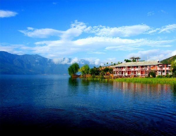 留恋泸沽湖的蓝天,阳光,湛蓝湖水以及淳朴的摩梭人,我在泸沽湖又住了5天。白天在客栈的阳光书房晒晒太阳,看看书,上上网,客栈老板情绪来了还会用吉他伴奏唱首好听的歌,闷了就看看窗外的湖,发发呆,想想那些很久都不敢触碰,如今已经淡然的心事。晚上有时参加篝火晚会,跟摩梭族的阿哥阿妹学习他们的舞步;有时和客栈里其他客人一起喝喝酒,聊聊天;有时一个人坐在阳台上,看看满天的繁星,享受这难得的静谧。
