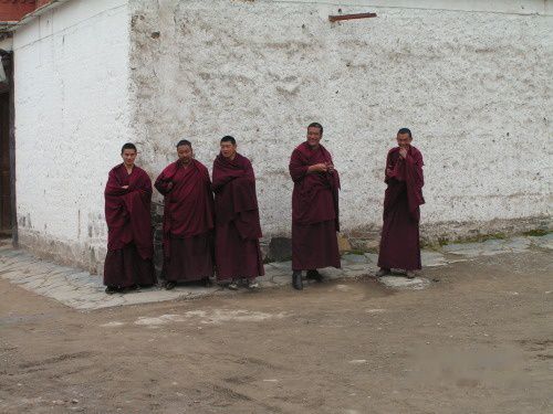 5日早,参观拉卜寺,拉卜楞寺和尚早晨懒洋洋地在晒太阳。