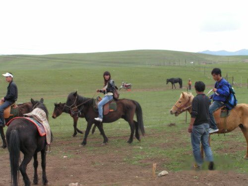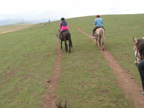 而后在桑科草原骑马。小马听话爱吃草,好呢35元骑一个多小时。