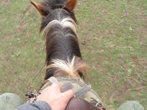 一个美眉骑在马上下不来了!