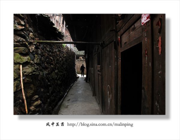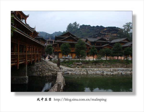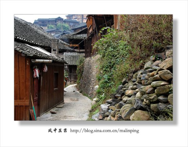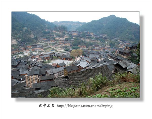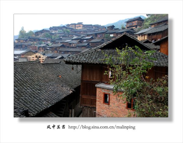 近中午时分到达西江千户苗寨,感觉寨子里显得有些冷清,没有一般旅游景点的那种喧闹和噪杂。天不太好,阴沉沉的,尽管把所带单衣、外套层层累加到了身上,依然感觉有些冷。11月18日患上感冒,加上头天晚上在火车上因买不到卧铺而坐了一宿,到达西江千户苗寨时就感觉浑身酸痛疲乏,没有精神。可找好客栈放下背包后还是立马在寨子里转悠起来。