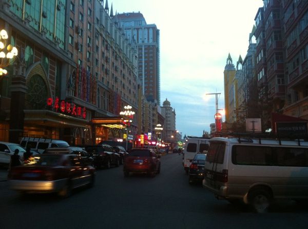 下午早早到了满州里,没什么安排,看着太阳发出的强烈的热光,唉!这是女同志出门的致命伤,所以就在酒店睡觉了。 晚上用完餐天半黑,夜幕下的满州里满大街多是俄罗斯美女坐阵的酒吧,空气中充满了酒精混杂着男人们散发出强烈的荷尔蒙味道,这里的夜晚是男人的天下,我早早的回宾馆休息。