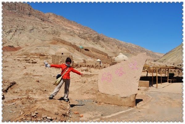 我们没有买门票去看那巨大的温度计,而是一路沿着火焰山行驶,第一次看到这种地貌地形,我们很惊喜,一路车拍。