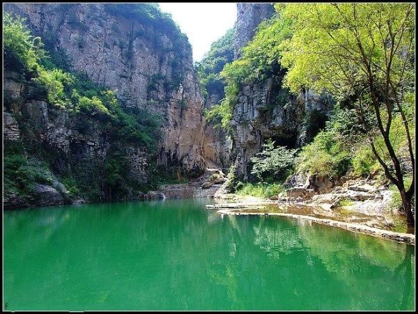 辉县方向走,这 一段路边敲锣较窄,到东拴马村,灵泉峡景区就到了,在路的左面。 这是个新开发的景区灵泉峡。景区不太大,精华部分一个小时多点就能转下了,如果要看全景区得4-5小时时间。 景区主要沿溪水而建,现虽然经人工开发,也是顺势修建,没有过多的雕琢,显得恰到好处。潭水清澈见底,瀑布层 层叠叠,两侧有大大小小多个天然岩洞。溪水顺沟奔流不息的向下流淌着,沿途不断有地下的泉水、岸上的滴水、岩 壁的渗水加入,壮大着溪流。景区的山峰千姿百态,造型奇特。峡内空气凉爽,人虽在登山,却很少出汗,用手摸一 下溪水,更是清凉透骨。这里虽不收费,但不比有些收费的景点风景差。