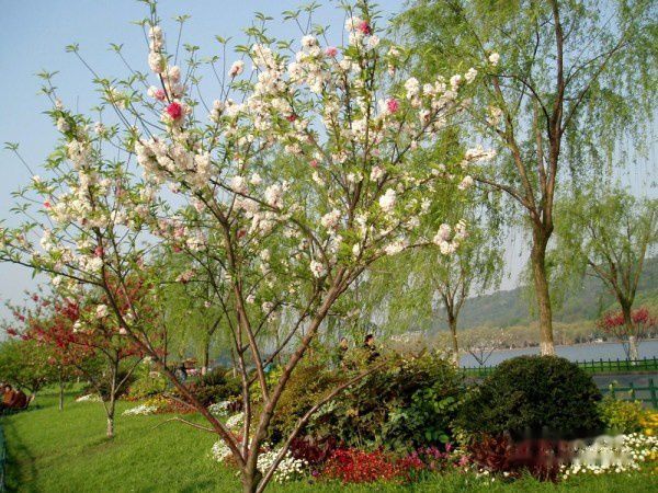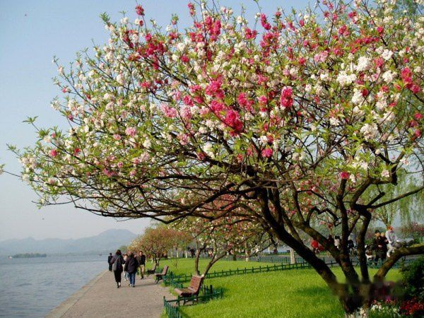 (白堤:内层种垂柳,外层植碧桃)