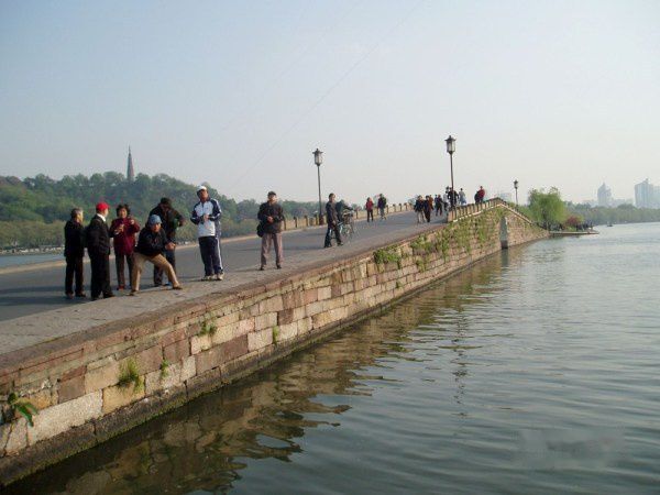 白堤上有两座桥, 一名“ 断桥”, 一名“锦带桥” ,外湖与北里湖湖水借此二桥而得以贯通相连。大家对断桥非常熟悉 , 却冷落了锦带桥 , 其实锦带桥也是西湖一座千年名桥。