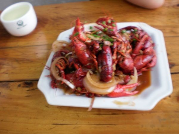 出门又去吃东西了,哎,没办法就是能吃的主啊!小龙虾28、菊花茶30一壶、臭豆腐8元,小龙虾还是建议买人家放门口的看得到的,没抽筋的,抽了筋的实在是肉太散了,而且会缩,有的还没抽干净筋,断在了里面,这个还是不推荐,不是很好吃啦!臭豆腐还是不错的!