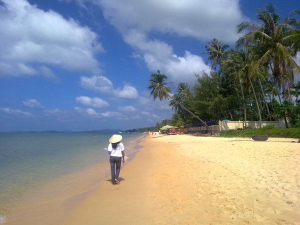 住:(续前)我们到富国的第二天在LONG BEACH找旅舍。先去了著名的SEASTAR,果不其然的客满。后来在他家旁边看了两家,有一家老板特和气,房间很干净,庭院也很漂亮,就订下了。老板说20号以后的房都订满了,我们正好住到19号,还剩MAINBUILDING一间,独栋木屋一间, 都是SEAVIEW,我们定了MAINBUILDING的那间,因为在二楼,没有比我们高的,在房间不用拉帘子,呵呵。房费USD45,结果第二天剩下的独栋木屋也住上人了,客满。房间里是两张大双人床,他家的沙滩很好,很干净,很适合游泳和晒太阳。就是没有游泳池,不过守着天然大泳池,没有也没关系。晚上他家餐厅有沙滩烧烤。 旅舍的名字叫HIEP THANH。挨着我们旅舍再过去就是桂皮小屋了,也不错,房间贵了点,USD90左右吧。老板管接送,从原来的酒店接过来,走的时候送机场。这一带距离适中,离镇上3公里左右。