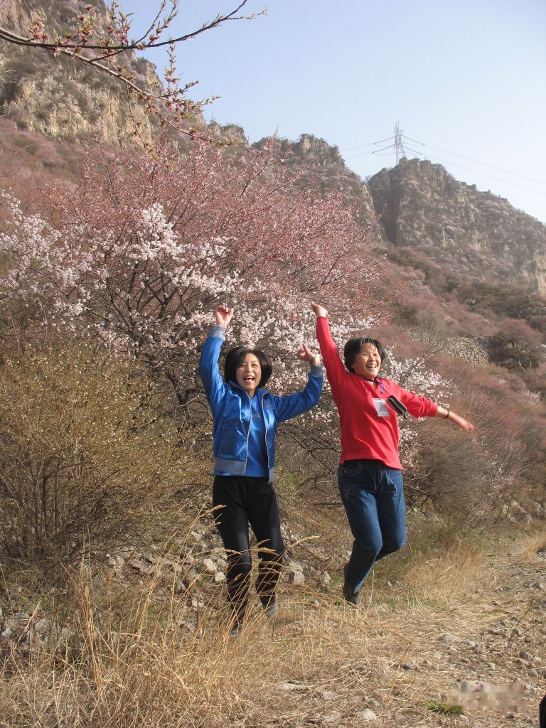 等到了青大哥、亚威大哥、金牛姐、灵芝姐(恕不一一列出)等人出来后,我们去住桃花谷看晨光下的桃花。行至桃花谷大家看到被一夜狂风刮的所剩不多的桃花依然兴奋不已,迎着晨曦兴致勃勃的爬至半山腰,尽情享受着大山清晨的新鲜空气,或欢呼或鹊跃。