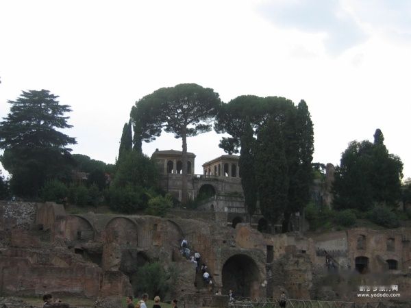 经一缓坡而上,左边便是帕拉提诺山丘(Palatino),