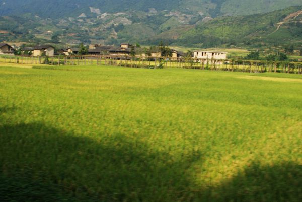 和贵楼外面,金黄黄的一片稻田,超乡村气息的