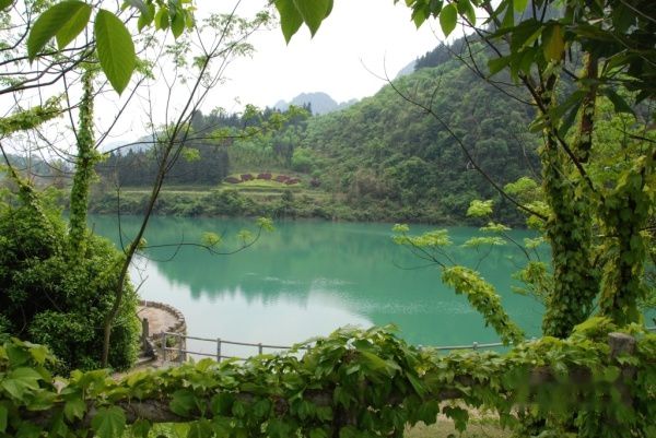 饭饱之后,走到荔波汽车站,踏上了去大七孔的小巴,¥9 per person。这小巴司机真是太能往空间不大的小车里塞人了,一路抗议他超载,都被他憨憨的笑容挡了回来,真像一拳打到棉花里⋯⋯终于到了大七孔,赶紧下车。幸好遥遥可见的一池碧波洗去了心头的无奈。