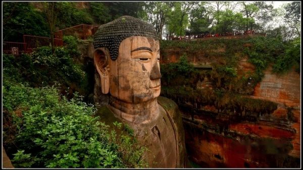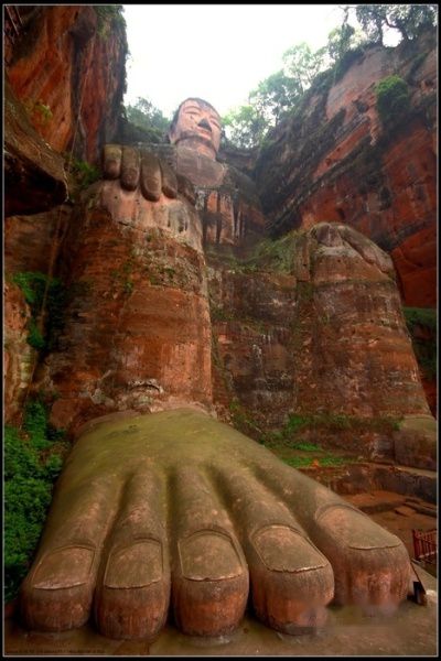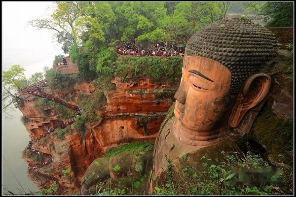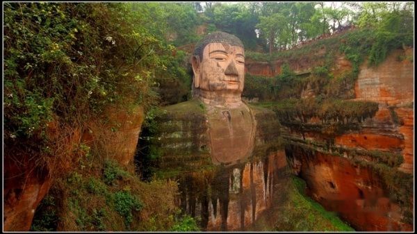 2011年4月中旬随营口市政协赴四川考察,考察之余游览了世界文化遗产乐山大佛 。 乐山大佛始建于唐朝开元元年【713年】,完工于贞元十九年【803年】历时90年,距今已有1200多年。佛像比例匀称,体态庄严,通高71米,头高14.7米,头宽10米,肩宽8米,颈长3米,耳长6.7米,头上发髻1021个,他的脚背宽8.5米,可以围座100多人。是世界之最。