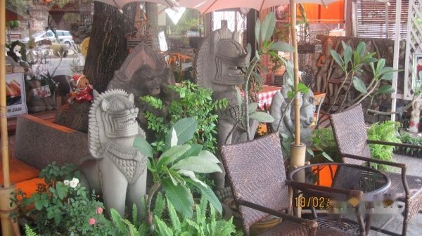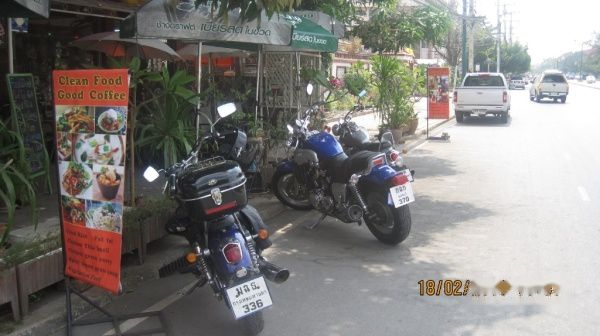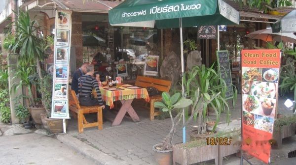 小咖啡店有空调,但,二月份的泰国还不很热,我们就选坐在外边的街边上。
