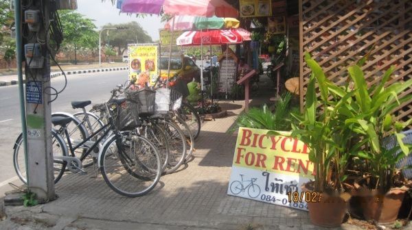 旁边就有家出租自行车的小店。说到“租车”,在泰国若租轿车,1300cc-1500cc的,车较新的,2000