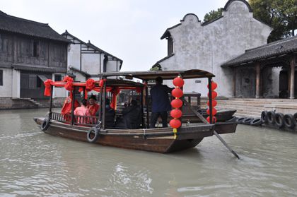 伴随着春天的脚步,第十一届乌镇香市水乡狂欢节正在紧锣密鼓的开展中,整个乌镇景区沉浸在喜庆欢快的氛围中,蚕仙巡游、民间杂耍,你方唱罢我登场,堂会戏曲、乡情茶韵,吃喝聊天频往来,暖洋洋的春意和热闹闹的民风交织成一曲别样生动的乌镇香市曲,而这其中最浪漫的乐章,无疑是大红囍字当头的水乡婚典。