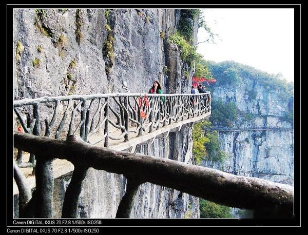 第二天,我们来到了天门山。这是最惊险的一天,为什么说是惊险的一天呢?因为我坐了世界上最长的缆车。我还走了鬼谷栈道,它很长,悬空的。最惊险的是一个透明玻璃的观景台,是建立在鬼谷栈道上的,下面是海拔一千多米的悬崖。很多大人都十分害怕,小孩子们尖叫声一片,而我却跟着爸爸,勇敢地走上去。这时的妈妈,害怕地说:“打死我,我也不去!”我和爸爸像明星一样,站在台上。妈妈给我和爸爸照相,也有很多外国人给我们照相。