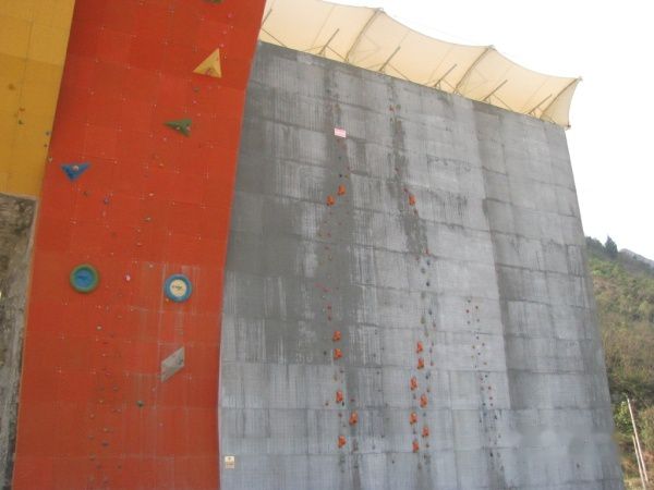 罗妹广场一侧的摸拟攀岩墙