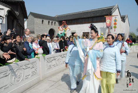 乌镇自2001年正式对外开放以来,本着尊重历史事实、挖掘传统习俗、展示民间风情和传承文化遗产的目的,及时恢复了享誉江南的“乌镇香市”,经过前10届的演绎,今年在原有是基础上,进一步挖掘、恢复了:蚕圣巡游、开蚕茧门、普洒圣水、蚕仙撒花、蚕山轧花、汰蚕花手、跳蚕花竿、摸蚕兴、描蚕仙、白莲庙会、水上婚典等延续了几百年、老百姓喜闻乐见、源于民间、民众参与兴趣高的近20个民间蚕文化活动。尤其是打开平时不太开启的白莲塔塔门,蚕花仙子从贴有“蚕”字的塔门登塔,高空撒花,再从贴有“茧”字的塔门出塔,期间将演绎清明期间活跃在农家门前稻场上的“跳蚕花竿”,届时可见姑娘和小伙,拨动和敲击着竹竿,姑娘们头戴蚕花或手捧蚕花,和着民间“跳蚕花竿”的歌谣,在竹竿上跳着各种动作;还有“秧坂迷宫”、摸蚕兴、描蚕仙等农村里的农家游戏。
