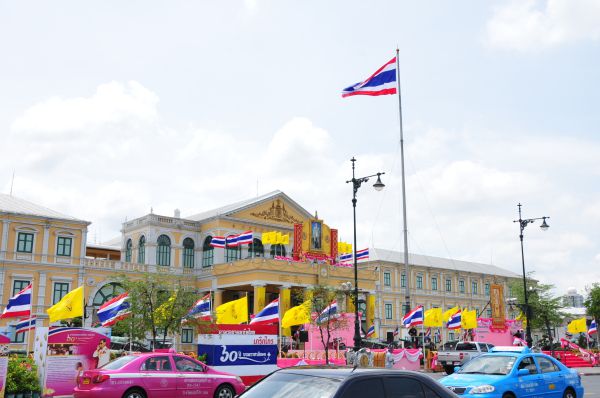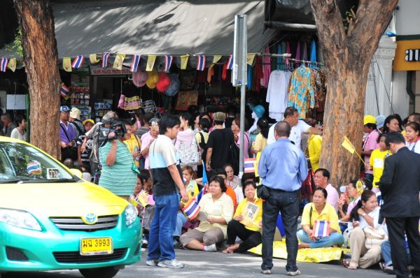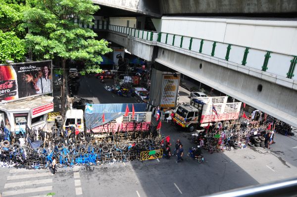 曼谷-----去之前很多人都劝我把行程往后推推,反正行程都定完了,爱咋咋地。真的很幸运,一天内同时看到了红衫军和黄衫军。早晨一大早去四面佛,在saim,没想到看到很多轮胎架子做的路障,到了路口司机告诉我们进不去,只能自己走一段,红衫军的营地就在四面佛,周围所有商场超市全部歇业,不知道是因为那天是国王继位60周年还是因为红衫军。不过既然到了,那就进去吧。真是很有组织,很多人安营扎寨,后勤保障也是相当完善,吃的喝的都管,好像大婶们去领东西呆了会就走了,哈哈。不过除了这一区域,没有再看到红衫军。平常熙熙攘攘的四面佛算上我们,院里就五个人,赶紧拜,然后撤,都没敢拍照。。。