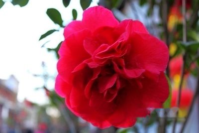 这个就是茶花了,路边种的茶花,每天早上都有花市,卖的也是茶花。茶花大部分都是红色的,我还很走运的拍到了双色的茶花。