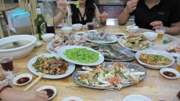 晚上在船家的介绍下,我们到巽寮镇的市场里自己买海鲜去餐厅加工吃,超便宜。我们是在市场一家叫“洲记海鲜”的店里买的。花了215元,买了2斤濑尿虾、1斤花花螺、1条红友鱼、1斤半红蟹、1斤白螺、1只八爪鱼…………忘了,剩下的要看相片才知道了。买完后去了对面的餐厅加工,除白灼是5元价格费外,其它方式都是13-18元。店家态度很好,加了一些素菜和饮料,买单下来是168。总的来说是比较便宜的了,至少比中午那顿合算超级非常之很多。
