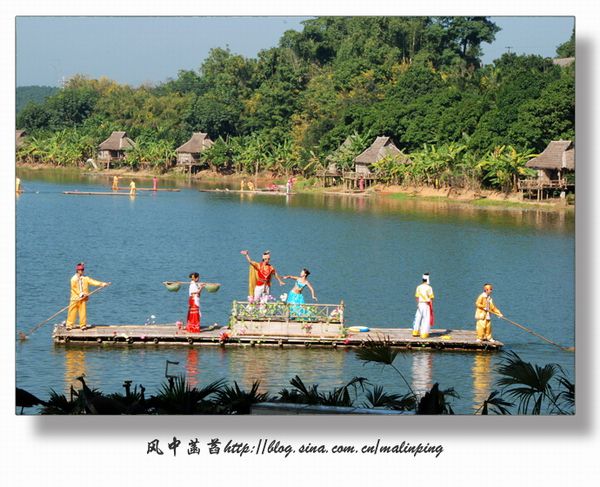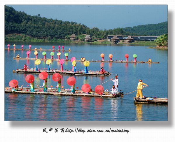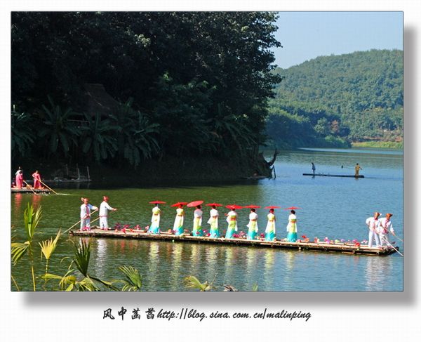 在曼迈桑康观赏原生态傣乡水上风情展演、孔雀放飞、放高升、丢包传情、傣女沐浴等活动。丢包传情时我抢到一个小香包,也因此得以和一批同样抢到香包的游客参与了龙舟竞赛的活动,赛后还享受到傣王轿的傣家最高礼仪。当然,乘坐傣王轿也是要付出一定的代价,不支付一定的现金,怕是要让你下不得轿的。