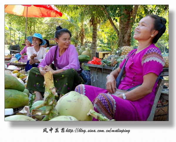 ▽ 街边卖水果的傣族妇女们。