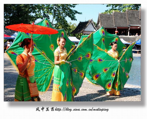 到了橄榄坝傣族园感觉才真正体验到了傣家风情。这里的傣式建筑颇具规模,有老建筑,也有一些正在建和刚建好的。新建筑大多依旧保持着傣式建筑的风貌。遗憾的是坐着电瓶车进进出出的,居然忘了拍几张傣家民居了。据说这里每户人家的傣式竹楼(不是竹子,而是很粗很大的橡木)的造价一般都在20万元以上。可见这里的住户还是相当富有的。