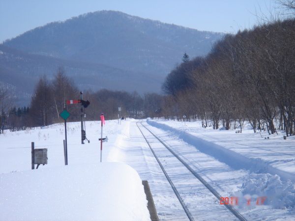 幾寅站台望去,火车迷一眼就能发现《铁道员》中的道具--红色的信号灯