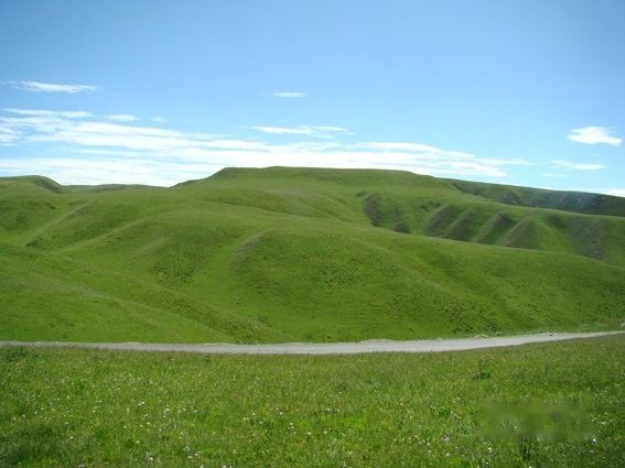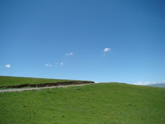 我看到 一望无际的草场山包 一望无际的蓝天 满地的格桑花
