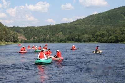 晌午刚过不久,我们就来到白鹿岛,驾着游船融进渴望已久的激流河,河水清澈透底,蓝天和山林将自己的色彩竞相投进河水,小河怎能容得这多色彩,洋溢的山川绽放出柔和的笑脸……坐在船上,两岸是逶迤的山峦,苍茫的林海,湍急的河流,无不展示着她的原始、神奇和豪迈。我们不得不惊叹大自然这位绘画大师用最丰富的色彩绘制了一幅最和谐的画卷。经过一小时左右的时间终于到了终点,真的很开心也很累,刚要拿起手机通知刘师傅(司机),一抬头就看见我们的车子了,走过去之后刘师傅已经帮我们准备好了冰水很毛巾,心里很是舒服啊。一问才知道刘师傅早就赶到了这里,把水放进了河水中,喝着冰凉的水,心里却是暖暖的。