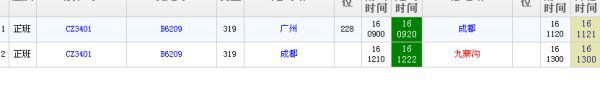 3月3日座广州飞九寨飞机,就cz3401这班机呢!9点广州飞,广州就这么一班机