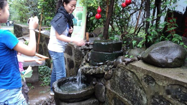 顺着阶梯继续前行,半山腰处,只见到大片大片的栗园,沉甸甸的果实挂满枝头,早已有好多人拎着竹篮捡拾落在地上的毛栗,简简单单的篱笆,小巧的竹门头将其与路隔开,却未见有拦截之意,门上挂着红灯笼,一副对联“山中有宝树上采,腹中有果刺中求”尽见其亲切之意。遥望山脚下楼阁交错,农家乐在自然中体现一份家的温馨,感受过寂静后,接受过心灵的荡涤后归于祥和,品茗中,尝佳肴中再回味山中游历一番的触动。