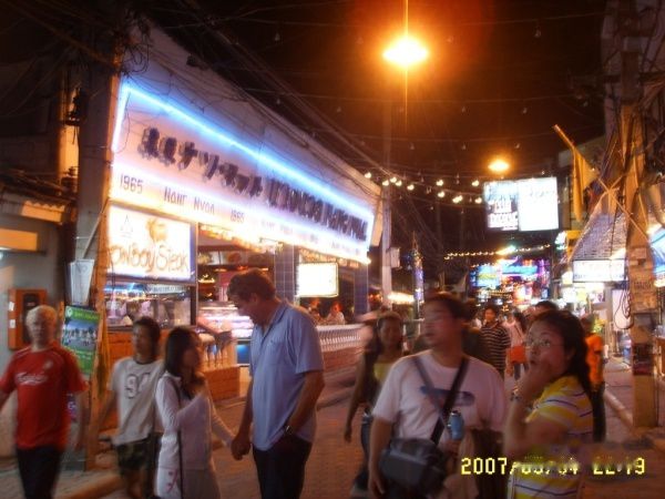 何况女人在这里是安全的,老外喜欢的是泰妹 小姐喜欢的是男人 所以即使凌晨2点我们四个女孩子走在大街上 我赶说女人比男人安全~~ 那两个女生想去见识一下男人街 我问了酒吧的服务生 MAN STREET 可是人家都说不知道,结果在我们夜晚瞎逛的时候的看到了以前在网上就看到过的那条有名的一条街,其中不乏我们所说的“色情”场所---一条岔路,转向boy‘s town,我可不想去看~~于是大家都否决了.因为纯参观的去,不好吧~~去玩?没有呢,又没有这个胆量~~~据说这里是男同志出入的场所。(当然,也不拒绝女性)泰国虽然是个佛教国家,但是自由度非常高,在这里色情产业是一种business。所有相关的演出、交易都是合法的,都只是一种金钱行为而已,不过就是是其中一个特色。