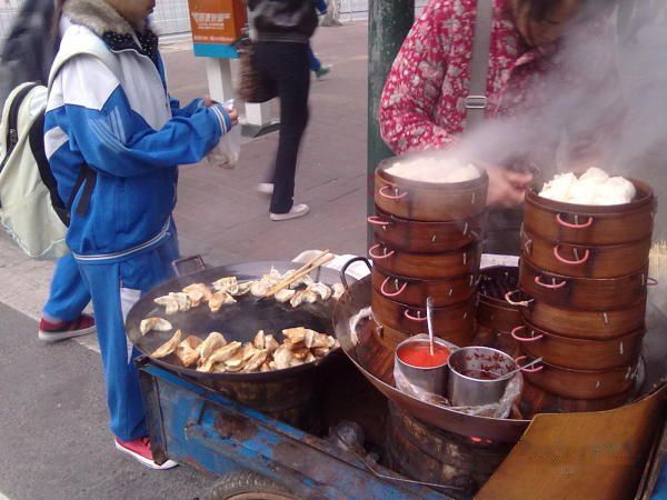 街边小吃,油炸饺子,两种口味,十个三元