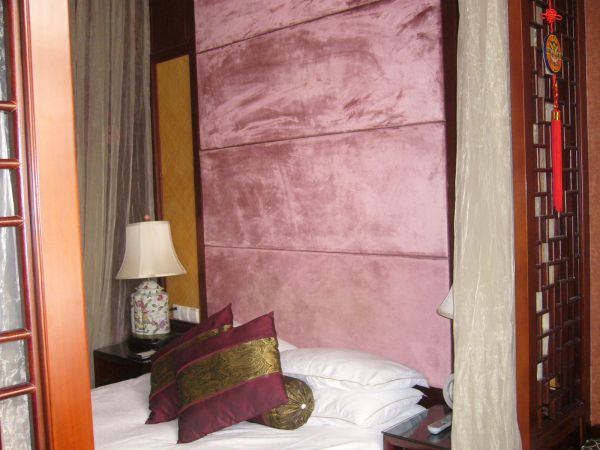 第一天早上9点从家里出发,跟着GPS往乌镇方向前进,路上经过两个收费站,共交了60元好像,11点左右终于到了我们预定好的子夜大酒店。这个酒店被周围的一片废墟包围着,进去后感觉还是不错的。我们订的是单人间,古色古香的床,浴室和房间之间装了块玻璃,还有木帘子,可透视也可保留私密性,房间虽然不是很大,但总的来说非常喜欢。