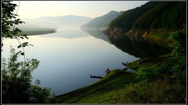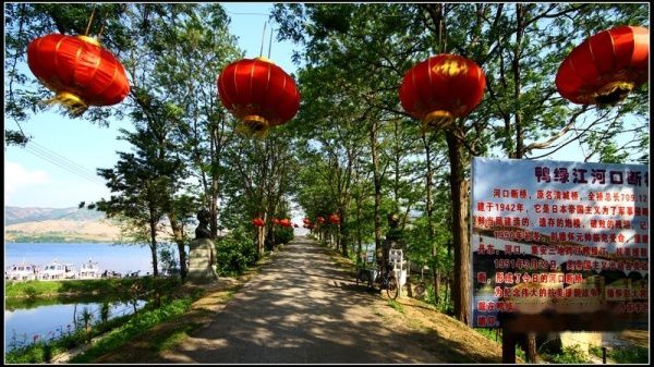 沿江下行到 丹东河口风景区,该风景区是国家AAAA级重点风景名胜区,是鸭绿江沿线景色最美的地方。中朝两国一衣带水,两岸鸡犬之声相闻。陆地水鸟啁啾,江面渔帆点点。朝霞如胭,映衬鸭江雾海奇观;晚霞似火,点缀渔舟唱晚神韵。