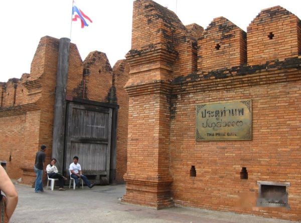 契迪龙寺往东一直走就到了塔佩门tha phai gate,这里城墙城门保护的较完整,还能看到当年的城墙的原状,还有完整的城门。城门外的护城河在这里被填平了变成了一个广场,周日夜市的摊档就从这里开始的。对面又有一个麦当劳。小孩喜欢,所以我们又在这里吃了一个巨无霸套餐145B。随后又在旁边的餐厅吃了一个Pizza,花费200B。