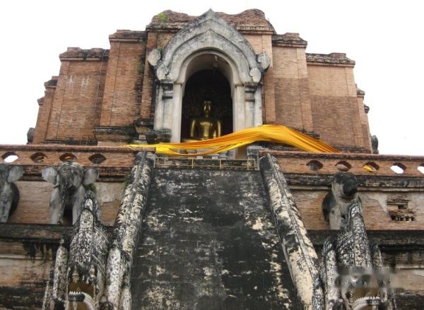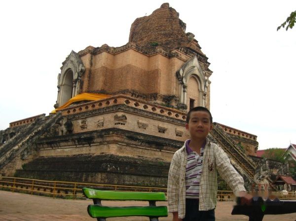 今天是在清迈的最后一个整天了,明天早上我们就要回程了。早上我们到清迈门市场走了一圈,买了10个烧卖,共20B,又在市场里的摊档吃了一个猪红汤粉20B,买了一个椰子15B,早餐就这么解决了。然后找了个网吧上网,确认明天早上的飞机是12点10分,半小时上网费才5B,真是便宜。随后我们走到契迪龙寺。