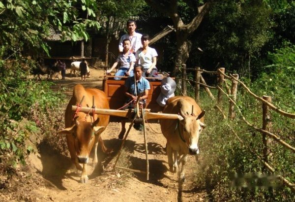 骑完大象我们走路100米左右来到另一个项目:坐牛车。牛车是当地古老的车,轮子都是铁做的,有2只牛拉着慢慢悠悠的走了20分钟。这种牛类似我们国内的黄牛,但他的颈背上多长了一块肉,好像骆驼的驼峰长到了脖子上一样,很是特别。骑完牛车我们又坐了20分钟的竹排,然后我们就驱车来到老虎乐园tiger kingdom吃自助午餐。